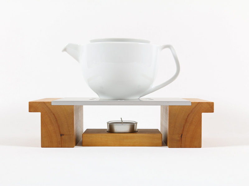 Edles Stövchen aus geöltem, heimischen Birnbaumholz und einer eloxierten Aluminiumplatte. Der Halter für ein Teelicht lässt sich zum Wechseln der Lichter einfach vorschieben.Das Stövchen steht absolut stabil, nichts kippelt.Die Aluminiumplatte leitet Hitze sehr gut und wird schön heiss. Sie hat etwas mehr Höhe als die beidseitigen Holzelemente, damit Töpfe und Ähnliches auf der Platte stehen und nicht auf dem Holz.