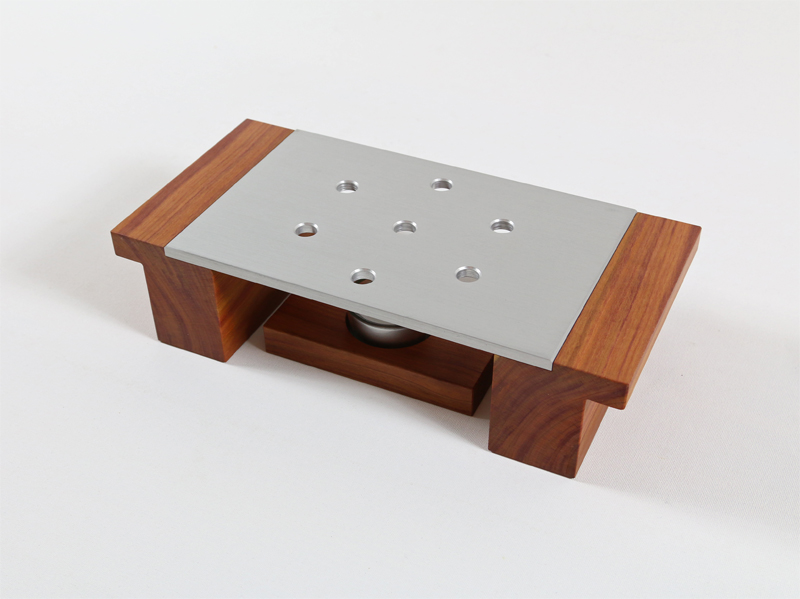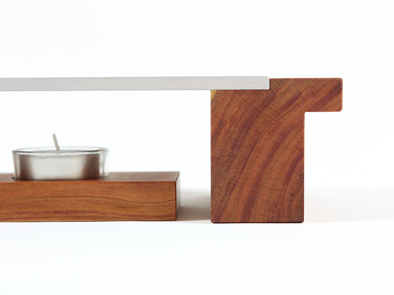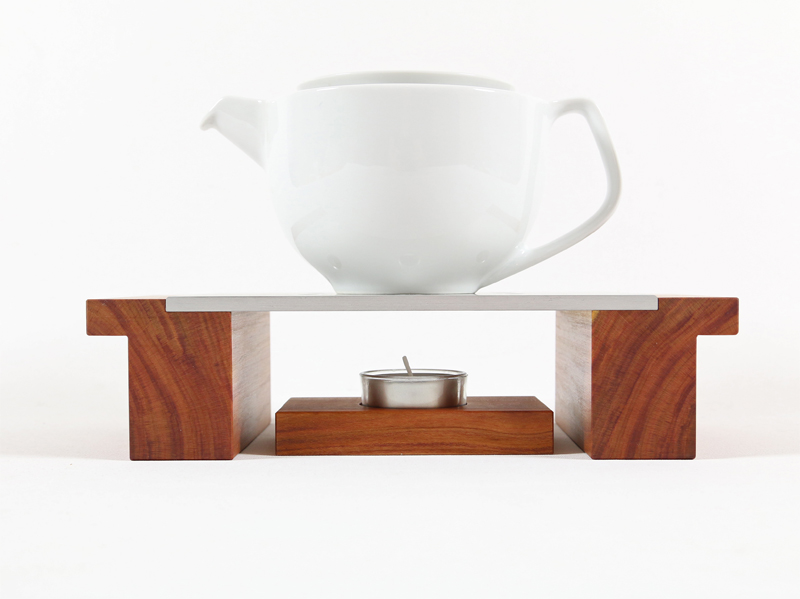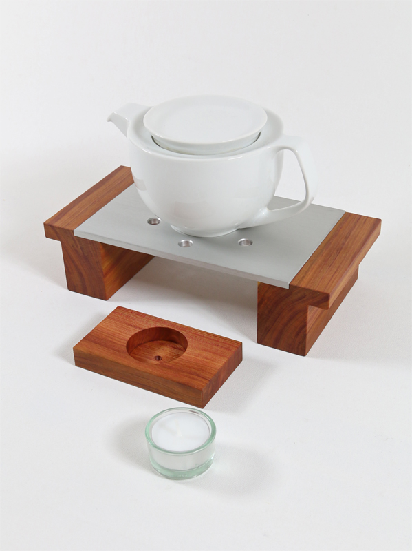 Edles Stövchen aus geöltem, heimischen Zwetschgenholz und einer eloxierten Aluminiumplatte.