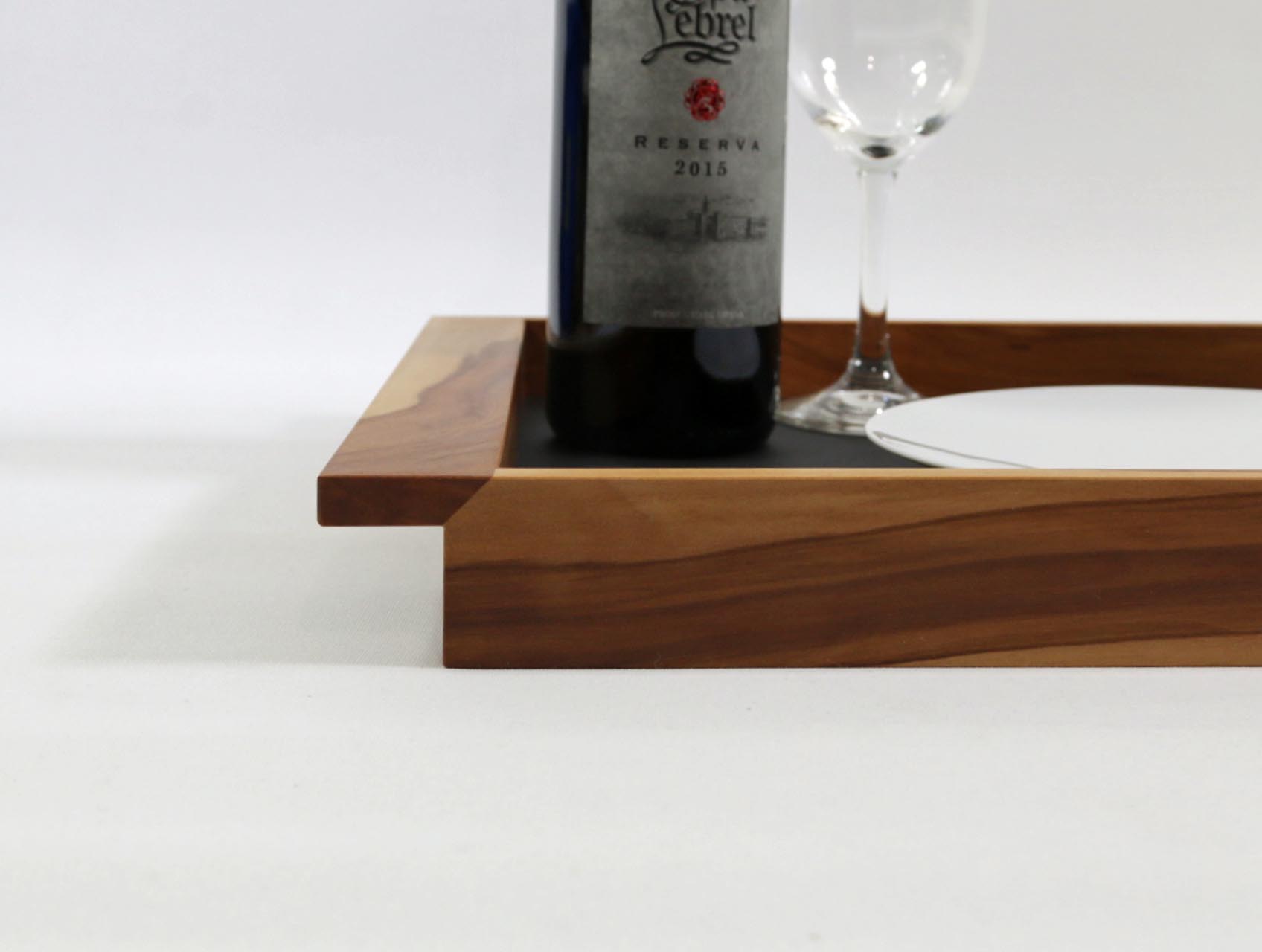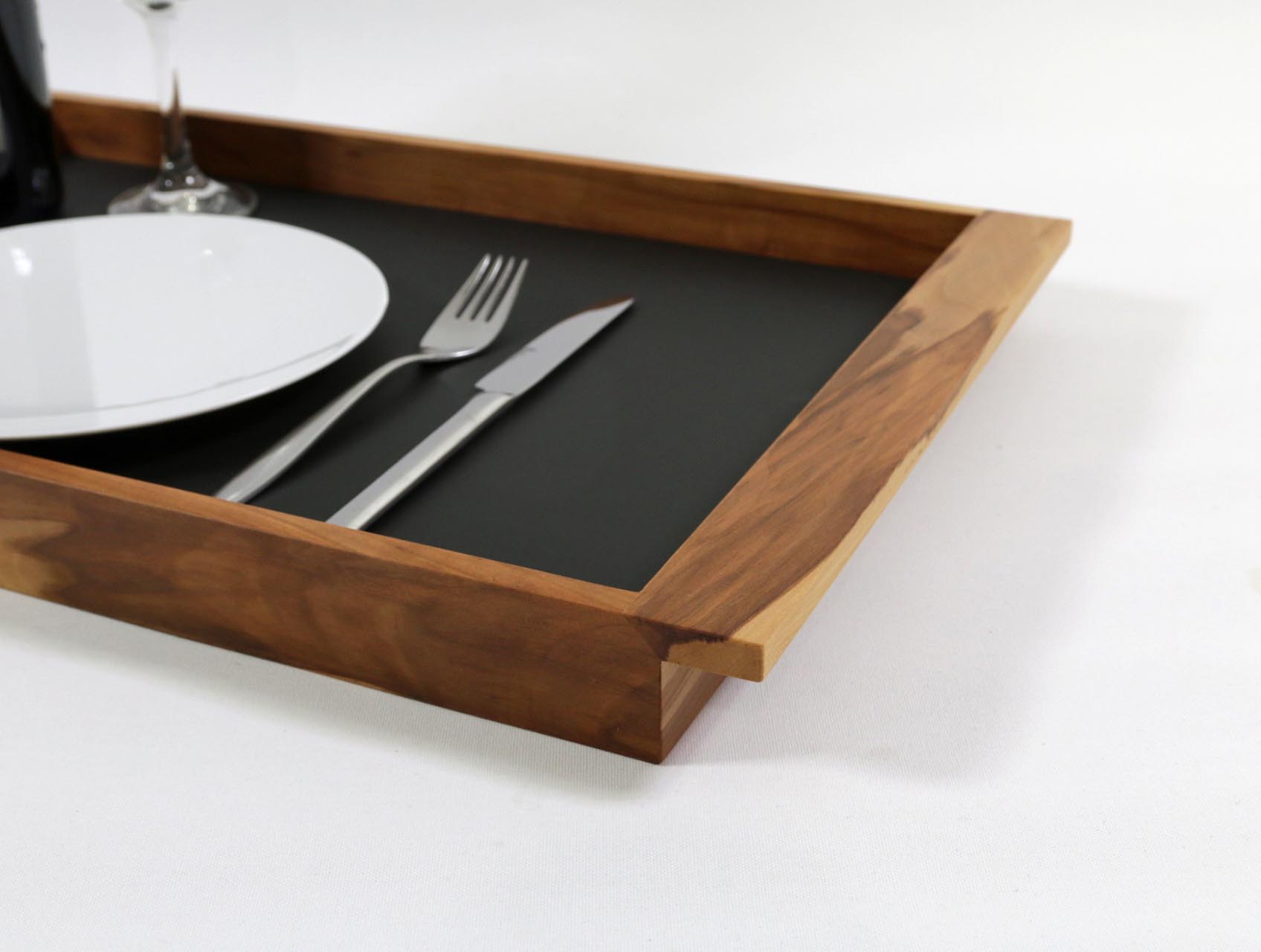 Die jeweilige Maserung fällt bei jedem Tablett wieder etwas anders aus.